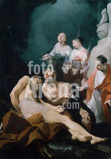 akg866983 Bencovich (Benkovic), Federico; um 1677-1753. "Der Apostel Andreas auf dem Kreuz mit den Heiligen Bartholomäus, Karl Borromäus, Lucia und Apollonia", um 1710/16. Öl auf Leinwand, 236 x 167 cm. Senonches (Dép.Eureet-Loir, Frankreich), Pfarrkirche.