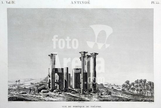 akg810145 Antinoë / Antinoopolis (Ägypten), Theaterportikus (römisch).-"Antinoë / Vue du portique du théâtre".-Kupferst. von Duhamel nach François-Michel Cécile. Aus: Description de l'Égypte, Paris 1809 ff., A.Bd.IV, Tf.55. Museum: Private Collection., KAIRO.