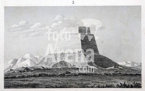 akg967075 El-Lahun / Illahun (Mittelägypten), Pyramide Sesostris' II. (Mittleres Reich, 12.Dynastie, 19.Jh.v.Chr.).-Ansicht.-Kupferstich von Daudet nach Zeichnung von Edmé François Jomard (1777-1862). Aus: Description de l' Égypte, Paris 1809 ff., A.Bd.IV, Tf.72, Nr.2. Museum: Private Collection., KAIRO.
