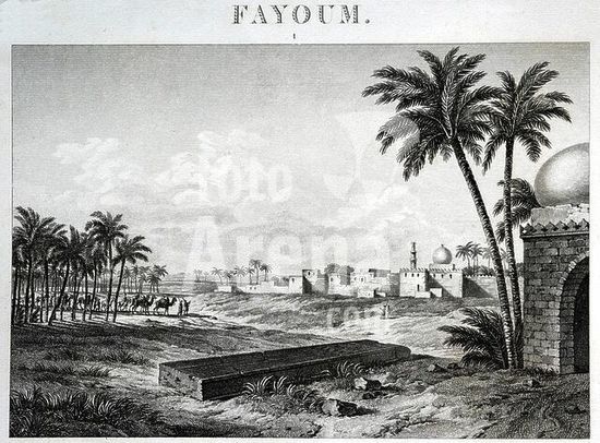 akg810238 Begig / Abgig, bei Medinet el-Fayum (Oase Fayum, Mittelägypten), Obelisk des Jeperkara-Senusert (Mittleres Reich, 12.Dynastie). /-"Fayoum / Vue (..) de l'obelisque de Begyg". / Kupferst. von Geissler. Aus: Description de l'Égypte, Paris 1809 ff., A.Bd.IV, Tf.71, Abb.1. Museum: Private Collection., KAIRO.