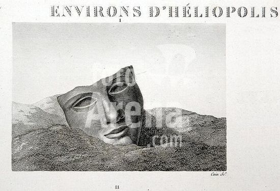 akg967055 Heliopolis (Unterägypten).-"Environs d'Héliopolis et d'Athribis. 1.2.15. Fragments trouvés à Quelyoub. )..)".-Kupferstich von Cain nach Zeichnung von Édme François Jomard (1777-1862). Aus: Déscription de l'Égypten, Paris 1809 ff., A.Bd.V, Tf.27, Nr.1. Museum: Private Collection., KAIRO.
