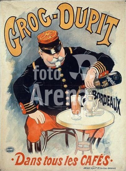 akg1664542 Genussmittel / Alkohol / Rum. /-" GROG-DUPIT / Dans tous les CAFÉS".-/ ( Werbung für Grog der Firma Dupit, Bordeaux). Farblithographie, undatiert. Entwurf: Albert Guillaume (1873-1942). Museum: Private Collection., Privatsammlung.