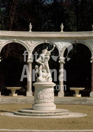 akg927040 Versailles (Dép.Yvelines, Ilede-France, Frankreich), Schlosspark / Jardins de Versailles (angelegt 1669 ff.; Planung: André Le Nôtre), Bosquet de la Colonnade (erbaut 1684; Arch.: Jules Hardouin Mansart). /-Teilansicht der Kolonnade mit Skulpturengruppe "Raub der Proserpina" von François Girardon (1628-1716).-/ Foto, 1979.