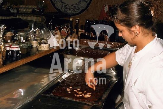 akg975153 Beruf / Chocolatier.-Herstellung von Schokolade in den Ateliers du Chocolat Serge Andrieu in Bayonne (Dép.Pyrénées-Atlantiques, Frankreich).-Foto, 1996.