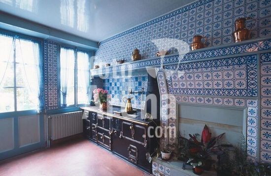 akg866333 zu: Monet, Claude; franz.Maler; 1840-1926. Giverny (Dép.Eure, Normandie), Maison Monet, Maison et Jardin de Claude Monet (Wohn-und Sterbehaus Claude Monets 1883-1926).-Innenansicht: Küche.-Foto, undat.