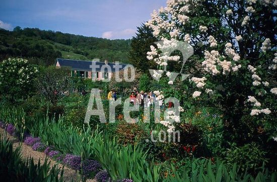 akg949158 zu: Monet, Claude; franz.Maler; 1840-1926. Giverny (Dép.Eure, Normandie), Maison Monet, Maison et Jardin de Claude Monet (Wohn-und Sterbehaus Claude Monets 1883-1926).-Im Frühling: Blick vom Garten auf das Haus.-Foto, undat.