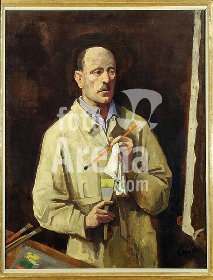 akg006096 Hofer, Karl Maler Karlsruhe 11.10.1878 - Berlin 3.4.1955. "Selbstbildnis vor der Staffelei", 1937. Öl auf Leinwand, 115 × 90 cm. © Karl-Hofer-Bildarchiv / AKG. Berlin, SMB, Nationalgalerie. Museum: Berlin, SMB, Nationalgalerie. Copyright: © Karl Hofer. This artwork is not in the public domain. It is your responsibility to obtain all necessary third party permissions from the copyright handler in your country prior to publication.