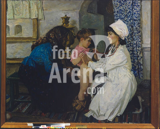 akg1011673 Plastow, Arkadij Alexandrowitsch 1893-1972. "Beim Arzt", 1967. Öl auf Leinwand, 136 × 160 cm. Simbirsk, Regionales Kunstmuseum. Museum: Simbirsk, Regionales Kunstmuseum. Copyright: © Arkady Alexandrovich Plastov. This artwork is not in the public domain. Additional copyright clearance may be required before use of this image.