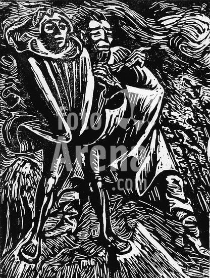 akg214544 Goethe, Johann Wolfgang von, 1749-1832, German statesman and writer. Works: Faust. Part One (1808). "Faust and Mephistopheles II". Woodcut by Ernst Barlach (1870-1938). From the series: Goethe, Walpurgis Night, 1923.