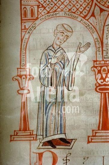 akg382979 Illumination, France:. Alsace, Marbach Abbey, 1154. Portrait of the canon Sintram of Marbach, the illuminator of the Guta-Sintram-Codex. From: Guta-Sintram-Codex. Ms. 37, fol. 4, Strasbourg, Biblioth. du Grand Séminaire. Museum: Strasbourg, Biblioth. du Grand Séminaire.