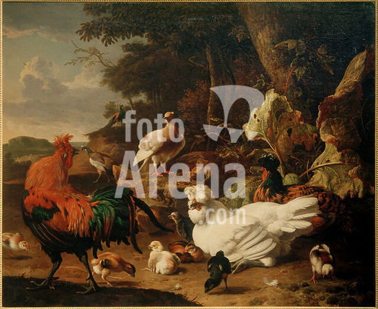 akg4754661 Hondecoeter, Melchior de; 1636-1695. "Hühnerhof", undatiert. Öl auf Leinwand, 111,3 × 135 cm. Inv.Nr. 1630; Leipzig, Museum der Bildenden Künste. Museum: Dresden, Gemäldegalerie, Alte Meister. Author: Melchior d' Hondecoeter.