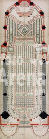 akg7246117 France / Architecture Gothique. Plan du choeur de la Cathédrale Notre-Dame de Paris en 1715, dessin de Pierre Lepautre (1660-1744). (Cathédrale de l'archidiocèse de Paris, située sur l'île de la Cité. Dédiée à la Vierge Marie, elle est l'une des plus grandes cathédrales en Occident. Commencée sous l'impulsion de l'évêque Maurice de Sully, sa construction s'étend sur plus de deux siècles, de 1163 au milieu du 14e siècle). Plume et encre de Chine, 166,5 x 58,8 cm. Paris, Bibliothèque Nationale.