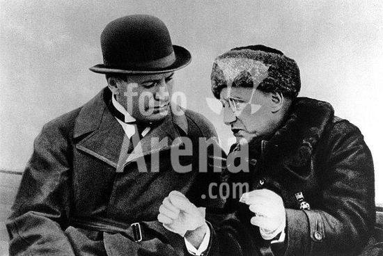 akg019090 D'Annunzio, Gabriele Italian poet, Pescara 12.3.1863 - Cargnacco near Gardone 1.3.1938. D'Annunzio (right) talking to Benito Mussolini during a boat trip on Lake Garda. Photo, c. 1925.
