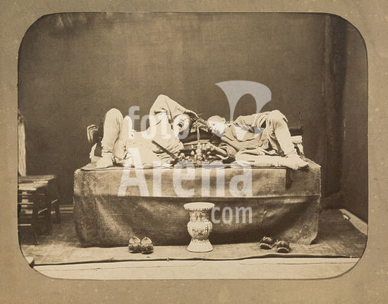 akg089522 Pharmaceuticals / Drugs:. Opium. "Fumeurs d'Opium". (Opium den in Shanghai, China.). Photograph, c. 1875. Berlin, Sammlung Archiv für Kunst und Geschichte. Museum: Berlin, Sammlung Archiv für Kunst und Geschichte.
