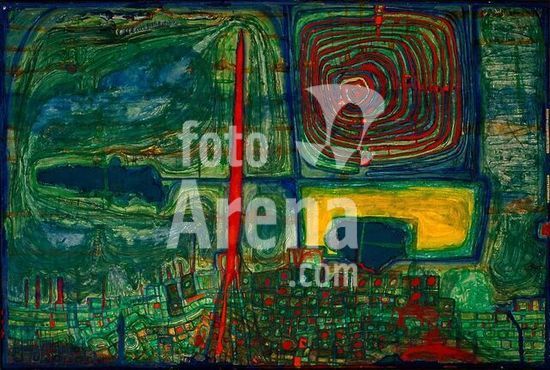 akg196720 Friedensreich Hundertwasser. 313 DU SOLEIL POUR CEUX QUI PLEURENT EN. CAMPAGNE. SONNE FÜR DIE, DIE AUF DEM LANDE. WEINEN. SUN FOR THOSE WHO WEEP IN THE. COUNTRYSIDE. 97 × 146 cm. Mixed media, 1959. Collection: Sammlung Essl, Vienna. Copyright: © NAMIDA AG, Glarus / Switzerland. For editorial use only. Additional copyrights must be cleared.