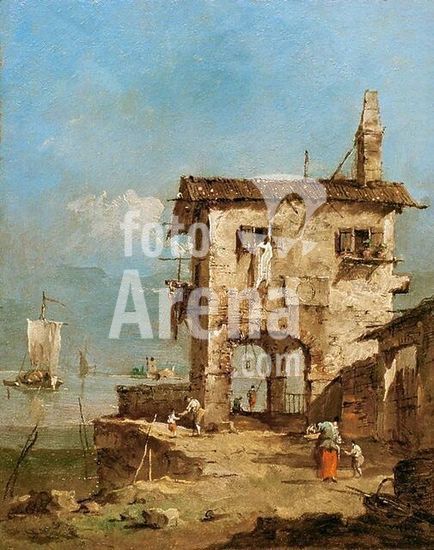 akg196989 Guardi, Francesco. 1712-1793. "Capriccio with a house on the Lagoon", 1781. Oil on wood, 20,5 × 16,2 cm. Betty and David M. Koerser Foundation. Zurich, Kunsthaus. Museum: Zürich, Kunsthaus.