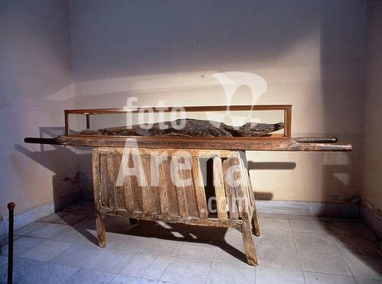 akg220937 History / Old Egypt / Mummies. Mummy of a holy crocodile on a wooden stretcher. Alexandria, Ptolemaic period. Alexandria, Graeco-Roman Museum. Museum: Alexandria, Graeco-Roman Museum.