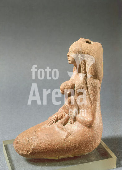 akg2437180 Ägyptisch, Neues Reich, 18. Dynastie, 1550-1292 v. Chr. Anthropomorphe Vase in Gestalt einer knieenden Mutter mit Kind auf dem Schoß. Gebrannter Ton, Höhe 11 cm. Herkunft: Ägypten. Inv. Nr. N 968, Département des Antiquités égyptiennes, Paris, Musée du Louvre. Museum: Paris, Musée Du Louvre.