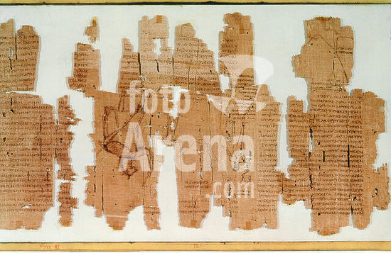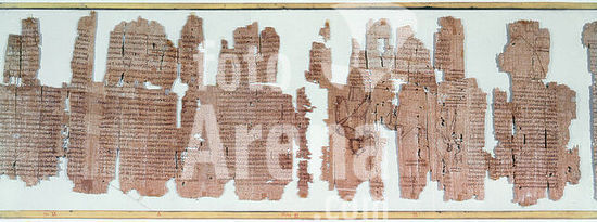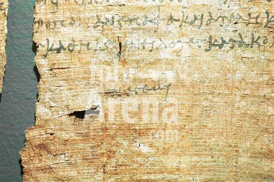 akg283124 re: Cleopatra VII Philopator; Egyptian Queen; 69-30 BC. Decree by Cleopatra about the tax exemption for the Rom. citizen Publius Candidus, written at the royal chancellery in Alexandria, 23.2.33 BC. Detail: autographic note by the Queen: "Thus it shall happen". Found in 1904 in Abusir el-Melek as mummy case. Papyrus Berolinensis P 25 239. Berlin, SMB, Ägyptisches Museum. Museum: Berlin, SMB, Ägyptisches Museum.