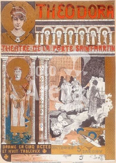 akg259360 Sardou, Victorien; French dramatist. 1831-1908. Works: Théodora (play, FP 1884). "THÉODORA (...) ". (Poster of Théâtre de la Porte Saint-Martin, Paris). Col. lithograph, unsigned Graphic design: Auguste Gorguet (died 1927) a. Manuel Orazi. Print: Monnier & Cie., Paris. Paris, private collection.