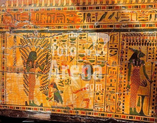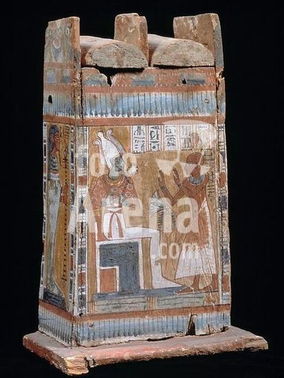 akg369143 Egyptian, New Kingdom, 1550-1070 BC. Ushabti box of the priest Nekhtamontu: Nekhtamontu worshipping Osiris, god of the dead. Wood, painted, height 36cm, width 23cm, depth 14cm. Inv. no. 2186. Florence, Museo Archeologico. Museum: Florence, Museo Archeologico.