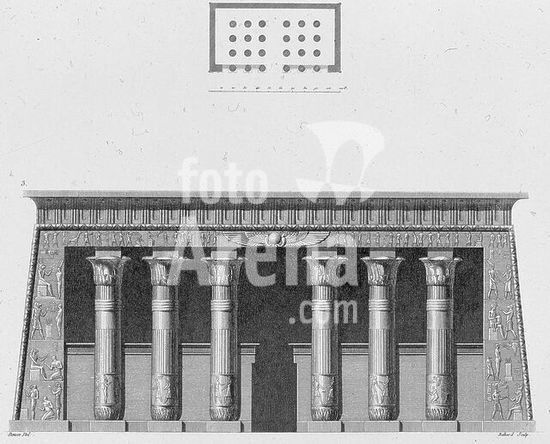 akg297379 Esna, Egypt, Tempel of Khnum, vestibule. (renewed in 181 B.C. under Ptolemy VI). - "Portique du Temple de Latopolis à Esné". copper engraving by L.P. Baltard (1764-1846) based on drawing by Dominique Vivant Denon (1747-1825). 23 × 10.5 cm. From D.V.Denon, Voyage dans la Basse et la Haute Égypte, 1802, Pl. 54, No. 3, Paris, private collection.