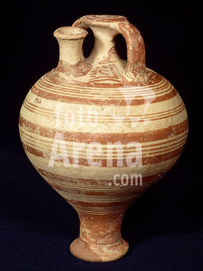 akg3027104 Zypern, mykenischer Import, späte Bronzezeit, späthelladisch III A-B (spät-zyprisch II), um 1400-1300 v.Chr. - Bügelkanne. - Ton, gebrannt, bemalt, Höhe 18,4 cm. Inv. P. 164. Genf, Musée d'Art et d'Histoire. Museum: Geneva, Musée d'Art et d'Histoire. Author: ANONYMOUS.
