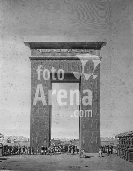 akg330374 Karnak (Egypt), Pylon. "Élévation perspective de la porte sud" (Reconstruction of the south pylon). Copper engr. aft. drawing by Lancret. Fr.: Description de l'Égypte, Paris, 1809 ff. Paris, Sorbonne. Museum: Paris, Sorbonne.