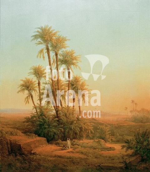akg330497 Karnak (Egypt), Avenue of Sphinxes. "Sphinx-Allee von Karnak". Painting, oil on canvas, doubled, 1871, 75 × 64cm, by Otto Georgi. (1819-1874). Private collection.
