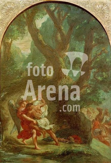 akg352128 Delacroix, Eugène. 1798-1863. "Jakobs Kampf mit dem Engel", um 1850/56. Öl auf Leinwand, 57 × 40,5 cm. Wien, Österr. Galerie im Belvedere. Museum: Wien, Österr. Galerie im Belvedere.