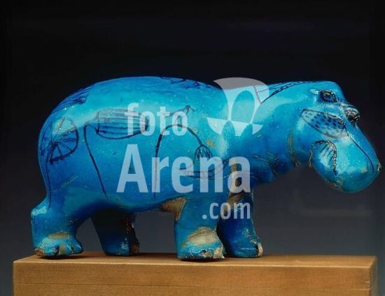 akg361830 Egyptian, Middle Kingdom, c. 2133-1786 BC. Hippopotamus, painted with water plants and papyrus. Blue fayence, length 21.5cm. Cairo, Egyptian Museum. Museum: Cairo, Egyptian Museum.
