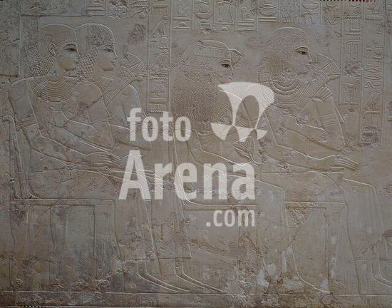 akg362095 Egyptian, New Kingdom, 18th dynasty, c. 1370 BC. Banquet scene with Amenhotep, brother of Ramose, with his wife May. Bas-relief from tomb of Ramose, vizier under Amenhotep III and Akhenaton. (Amenhotep IV), Dayr al-Madinah, Thebes West, tomb of Ramose (TT 55).