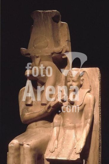 akg229786 Egyptian, New Kingdom, 18th Dynasty, Time of Tutankhamun, c. 1346-1337 B.C. Statuette of the God Ammun. Slate; Height 58cm. Found: Court of the Temple of Ammon in Karnak. Cairo, Egyptian Museum. Museum: Cairo, Egyptian Museum.