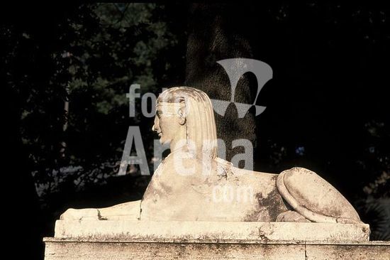 akg424187 Rome - Roma (Latium, Italy), Piazza del Popolo. (1816-24 classicist redesign by Giuseppe Valadier), Exedra with sphinxes and fountain with Roma. Partial view: Egyptianised sphinx. Photo.