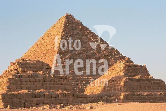 akg561966 Gizeh - El-Gîza (Lower Egypt), Pyramids, Pyramid of Mykerinos (Old Kingdom, 4th dynasty, c. 2520 B.C.; 62 m tall, originally 66.5 m). View from the south including the stepped pyramids of the queens. Photo, 2006.