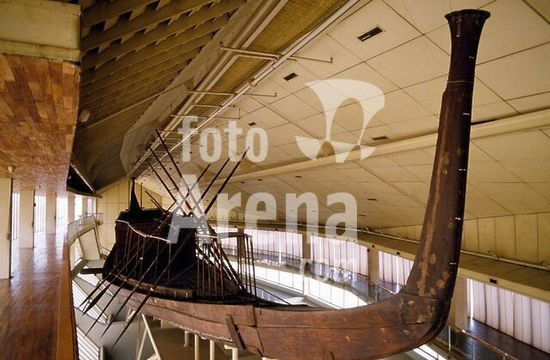 akg567882 Egyptian, Old Kingdom, 2537 BC. Burial ship in the form of the holy barque (Wia), probably used for the burial of King Cheops (2460-2537 BC). Cedar wood, 43m long. Reconstructed out of 1224 pieces, found in 1954 near the south-east corner of the pyramid of Cheops. Giza, Museum. Museum: Giza, Museum.