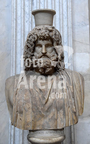 akg5953277 Bust of SerapisThe Graeco-Egyptian god is wearing the modius on his head.Marble2nd cent AD.inv. 245Vatican Museums (Pio Clementino Museum - Round hall).