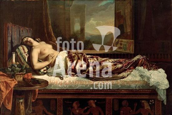 akg608183 Cleopatra VII Philopator. Egyptian Queen; 69 - 30 BC. "Cléopâtre" (Cleopatra). (Suicide of Cleopatra by the selfinflicted bite of a poisonous asp). Painting, 1841, by August German von Bohn, called Guermann Bohn (1812-1899). Oil on canvas, 90 × 134cm. Detail. Inv. 822. Nantes, Musée des Beaux-Arts. Museum: Nantes, Musée des Beaux-Arts.
