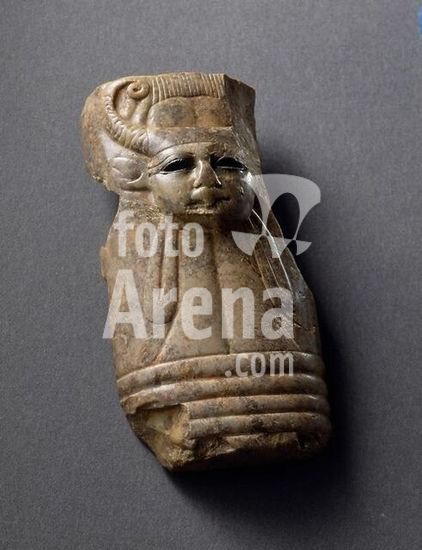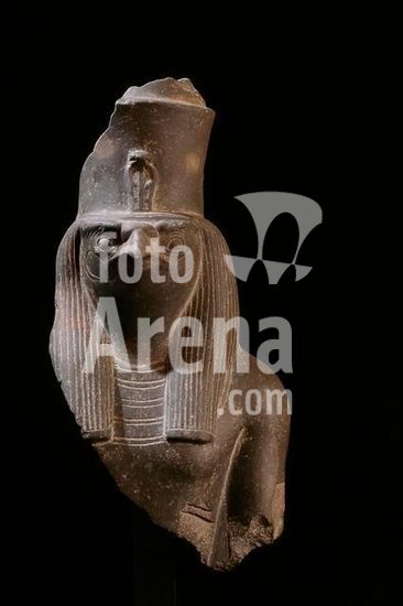 akg943938 Ägyptisch.-Fragment einer Statue des falkenköpfigen Gottes Horus.-Stein. Museum: Musée Champollion., Figeac.