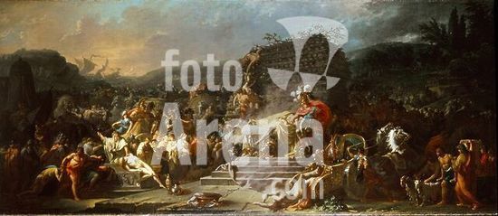 akg899169 David, Jacques Louis. 1748-1825. " Les funerailles de Patrocle" (Die Bestattung des Patroklos), undat. (Achill opfert am Scheiterhaufen seines im trojan. Krieg durch Hektor getöteten Freundes Patroklos 12 trojanische Männer und schleift die Leiche Hektors um das Grabmal. Öl auf Leinwand. Dublin, National Gallery of Ireland. Museum: Dublin, National Gallery Of Ireland.