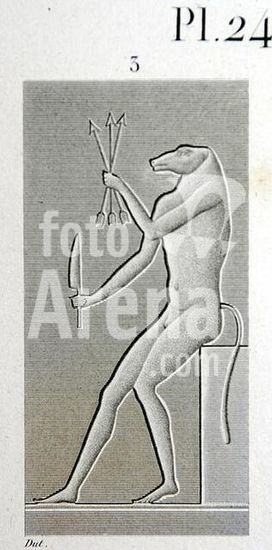 akg896229 Dendera (Ägypten), Hathortempel (ptolemäische Zeit, römische Kaiserzeit, 1. Jahrhundert n.Chr.).-Die Gottheit Bes.-Relief.