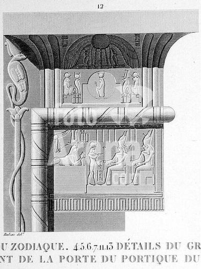 akg966301 Dendera (Ägypten), Hathortempel (ptolem. Zeit). /-"Dendera (Tentyris) /-"Basrelief de l'appartement du zodiaque (...).-/ Kupferstich von Antoine Phélippeaux nach Zeichnung von André Dutertre (1753-1842). Aus: Description de l'Égypte, Paris 1809 ff.,A. Bd.IV, Tf.24, Nr.3. Museum: Private Collection., KAIRO.