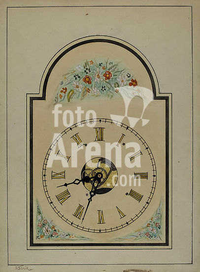 alb3731028 Clock. Dated: c. 1938. Dimensions: overall: 29.9 x 22 cm (11 3/4 x 8 11/16 in.) Original IAD Object: 7{9"h; 2'1 1/2"wide. Medium: watercolor, colored pencil, pen and ink, and graphite on paperboard. Museum: National Gallery of Art, Washington DC. Author: Nicholas Gorid.