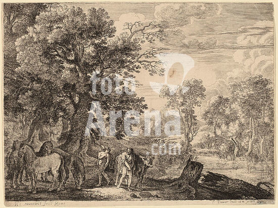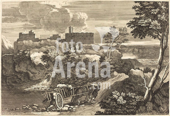alb3738672 Landscape with Wagon. Medium: engraving. Museum: National Gallery of Art, Washington DC. Author: Sebastien Bourdon.