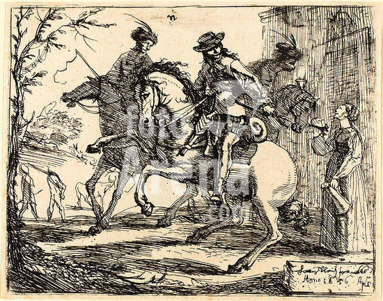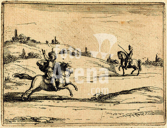 alb3731341 Two Knights. Dated: 1628. Medium: etching. Museum: National Gallery of Art, Washington DC. Author: JACQUES CALLOT.