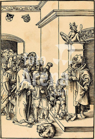 alb3732016 Christ before Annas. Dated: in or before 1509. Medium: woodcut. Museum: National Gallery of Art, Washington DC. Author: Lucas Cranach the Elder.