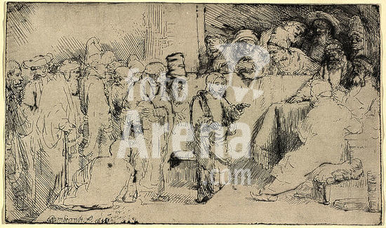 alb3732066 Christ Disputing with the Doctors: a Sketch. Dated: 1652. Dimensions: sheet (trimmed to plate mark): 12.7 x 21.5 cm (5 x 8 7/16 in.). Medium: etching and drypoint. Museum: National Gallery of Art, Washington DC. Author: Rembrandt Harmensz van Rijn.