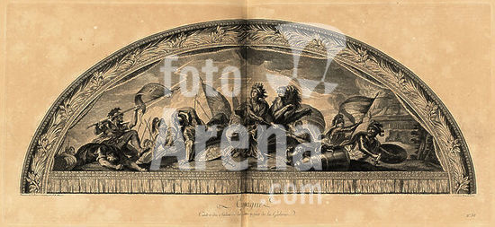 alb3732078 L'Espagne Cintre du Salon de la Guerre en face de la Galerie (Spain, Center of the Salon of War Opposite the Gallery) [pl. 38]. Dated: published 1752. Dimensions: sheet: 64 × 91.6 cm (25 3/16 × 36 1/16 in.) plate: 36 × 81.8 cm (14 3/16 × 32 3/16 in.). Medium: engraving on laid paper. Museum: National Gallery of Art, Washington DC. Author: Jean-Baptiste Massé (designer) and Charles Dupuis (engraver) after Charles Le Brun.