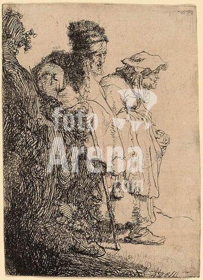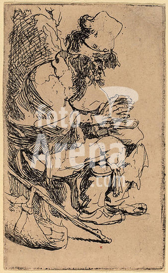 alb3732626 Beggar Man and Woman behind a Bank. Dated: c. 1630. Dimensions: overall: 11.3 x 8.1 cm (4 7/16 x 3 3/16 in.). Medium: etching, drypoint and burin. Museum: National Gallery of Art, Washington DC. Author: Rembrandt Harmensz van Rijn.