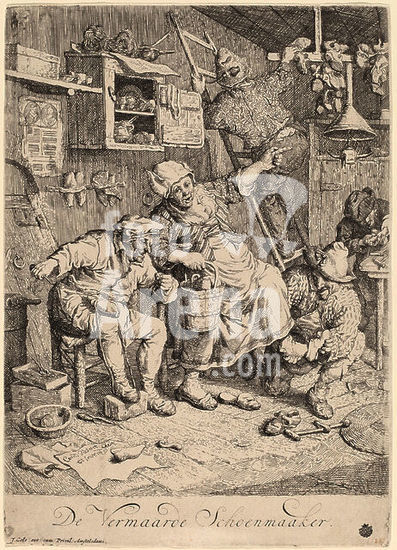 alb3732671 The Merry Shoemaker. Dated: 1695. Dimensions: sheet (trimmed to plate mark): 25.2 x 18 cm (9 15/16 x 7 1/16 in.). Medium: etching. Museum: National Gallery of Art, Washington DC. Author: Cornelis Dusart.